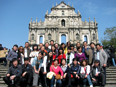 由香港借渡輪前往澳門,“賀國慶、慶回歸”的巨標,提醒著人們這里剛剛舉行過澳門回歸10周年的慶典。穿越了五百年的歷史,今天擺脫了殖民地的澳門,除了葡萄牙駐澳門總領(lǐng)事官邸掛著的一面綠色葡萄牙國旗外,其它皆是中華人民共和國國旗和澳門區(qū)旗,顯示著回歸的澳門,其背后有著強大祖國的支持。