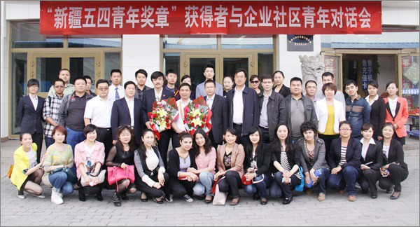 由自治區團委主辦,烏魯木齊市團委承辦的新疆五四青年獎章獲得者與企業社區青年對話活動,于5月6日下午在新疆華春投資集團舉行。來自首府十余個企業70余名青年代表參加了對話會,共同分享新一屆新疆五四青年獎章獲得者楊述友和艾沙江•尼扎木丁他們的成長經歷和奮斗故事。自治區團委副書記曾冠軍、城市青年工作部部長、副部長出席了座談會,會議由團市委副書記毛明•依明主持。
