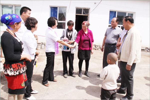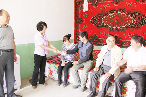 在少數(shù)民族傳統(tǒng)節(jié)日肉孜節(jié)即將到來前的8月4日-5日,為使新疆華春投資集團(tuán)下屬的華春毛紡公司穆斯林員工和五家渠農(nóng)六師少數(shù)民族貧困牧民能夠過上一個(gè)愉快、祥和的節(jié)日,華春集團(tuán)工會(huì)主席高青和集團(tuán)人力資源部部長(zhǎng)胡梅、集團(tuán)下屬的華春毛紡公司總經(jīng)理助理白寶兵及集團(tuán)編網(wǎng)部汪剛等一行4人組成的慰問組,代表李成功總裁和華春全員,與五家渠師市主管經(jīng)濟(jì)和勞動(dòng)就業(yè)的有關(guān)領(lǐng)導(dǎo)一同來到北塔山牧場(chǎng),親切看望了在五家渠華春毛紡工業(yè)園工作的哈薩克族員工的家庭,同時(shí),對(duì)北塔山牧場(chǎng)十多個(gè)困難牧民家庭進(jìn)行了慰問,并為每戶送去500元的慰問金,獻(xiàn)上華春集團(tuán)的一份心意。