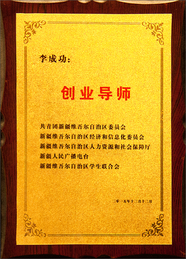 由新疆人民廣播電臺、自治區團委、自治區經信委、自治區人社廳及自治區學生聯合會四家單位共同舉辦的新疆第二屆創業導師校園行活動總結表彰暨創業導師頒獎盛典,于12月16日在新疆電臺隆重舉行。對李成功總裁等企業家創業導師進行了表彰,頒發了創業導師聘書牌匾。