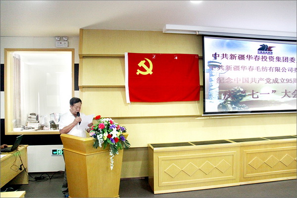 為慶祝中國(guó)共產(chǎn)黨建黨95周年,迎接“七一”黨的生日,6月28日,集團(tuán)黨委與華春毛紡黨委慶“七一”黨員大會(huì)在華春毛紡AAA級(jí)旅游工業(yè)園舉行,60多名來(lái)自華春各條戰(zhàn)線的共產(chǎn)黨員和入黨積極分子的代表參會(huì)。