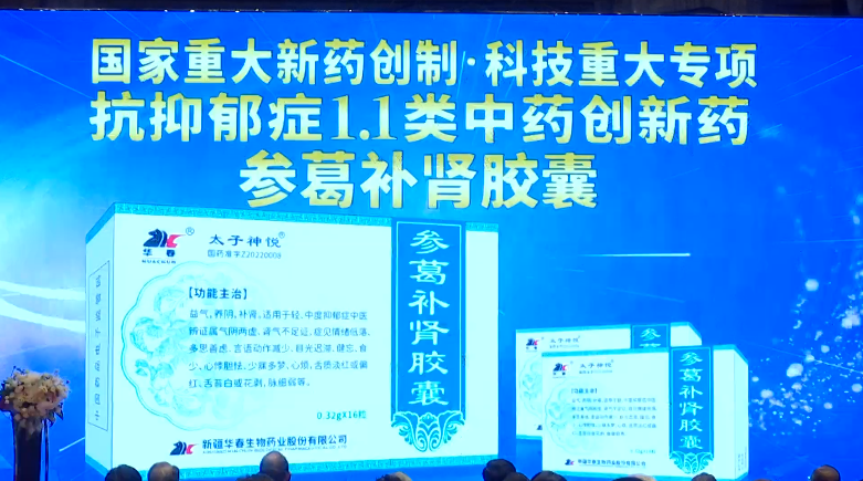 “參葛補腎膠囊”由新疆華春生物藥業股份有限公司與清華大學生命科學學院歷時22年聯合研發,該項研究被定為“國家重大新藥創制·科技重大專項”。“參葛補腎膠囊”是以有效部位群復方配伍作為治療抑郁癥的中成藥,是中國目前解決中醫“腎陽虧虛”發病機理而引發的,治療輕中度抑郁癥的創新中藥。