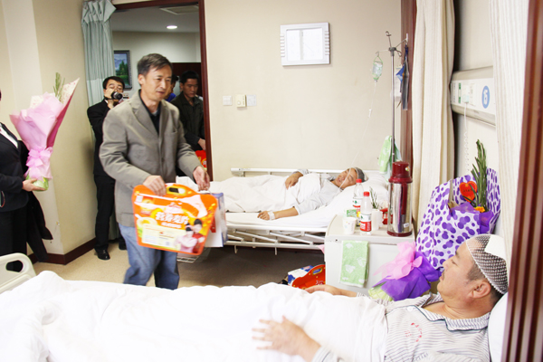 11月16日,烏魯木齊高新區工會主席韓建新一行6人,前往醫學院住院部看望慰問了為保護公司財產,而被昌吉州多斯巴億農業開發有限責任公司打傷的烏魯木齊市華春商貿有限公司7名員工。