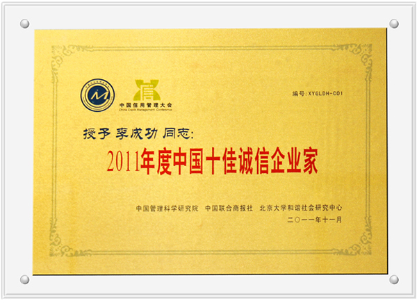 在11月20—21日于北京隆重召開的第六屆中國杰出管理者年會暨第二屆中國信用管理大會上,新疆華春投資集團和華春投資集團董事局主席兼總裁李成功先生分別榮獲“2011年度中國信用十佳企業”、“2011年度中國十佳誠信企業家”。本次大會是“十二五”開局之年我國社會信用體系建設中的一次年度盛會,全國數十家行業協會、千余家知名企業積極參與。本次獎項由政府相關部門與行業協會及媒體等推薦、組委會特別提名,本著公開、公平、權威的原則,歷經近3個月,對重點行業和企業家特別評出該獎項,并由國家領導人頒發了獎牌和榮譽證書。