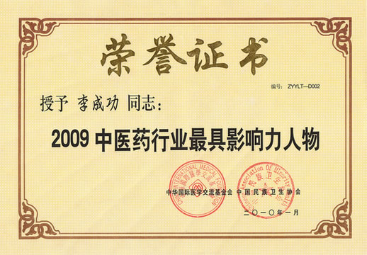 亞心網訊(華春)由中華國際醫學交流基金會、中國民族衛生協會主辦的“第四屆中醫藥發展論壇暨新中國60年中醫藥成就展”于1月10日在北京人民大會堂隆重舉行。開幕式上,國家及相關部委的領導人為中國醫藥界獲獎企業與個人頒發了獎牌與榮譽證書,新疆華春投資集團榮獲《2009年中醫藥事業發展杰出貢獻獎》、《2009年中醫藥繼承與創新獎》,總裁李成功先生被評為“2009中醫藥行業最具影響力人物”。