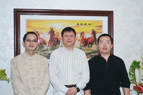 新疆硬筆書法家協會顧問、華春投資集團總裁李成功與新疆硬筆書法家協會主席戴永芳(左)新疆硬筆書法家協會執行主席兼秘書長彭正勇 (右) 合影。
