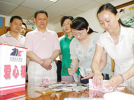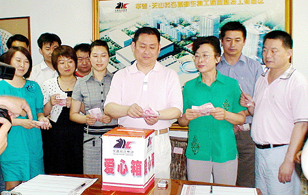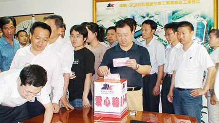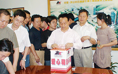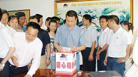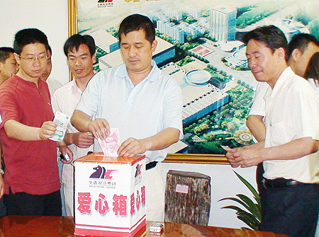 當華春從新聞上得知5月12日下午四川汶川縣發生了7.8級強烈地震、突如其來的強烈地震襲擊了四川省汶川縣及其周邊地區造成了巨大的生命財產損失的消息后,華春企業工會和黨支部于13日發出向地震災區群眾捐款救助倡議,災難牽動著全體工友們的心,立即得到華春全體員工的積極響應,董事局主席兼總裁李成功先生帶頭捐款,大家紛紛向災區獻出愛心。