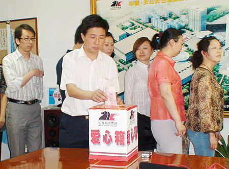 5月13日,新疆華春投資集團企業工會和黨支部舉辦了向四川省汶川縣地震災區群眾捐款救助活動,100多名員工在半個小時內災區捐款17975元。